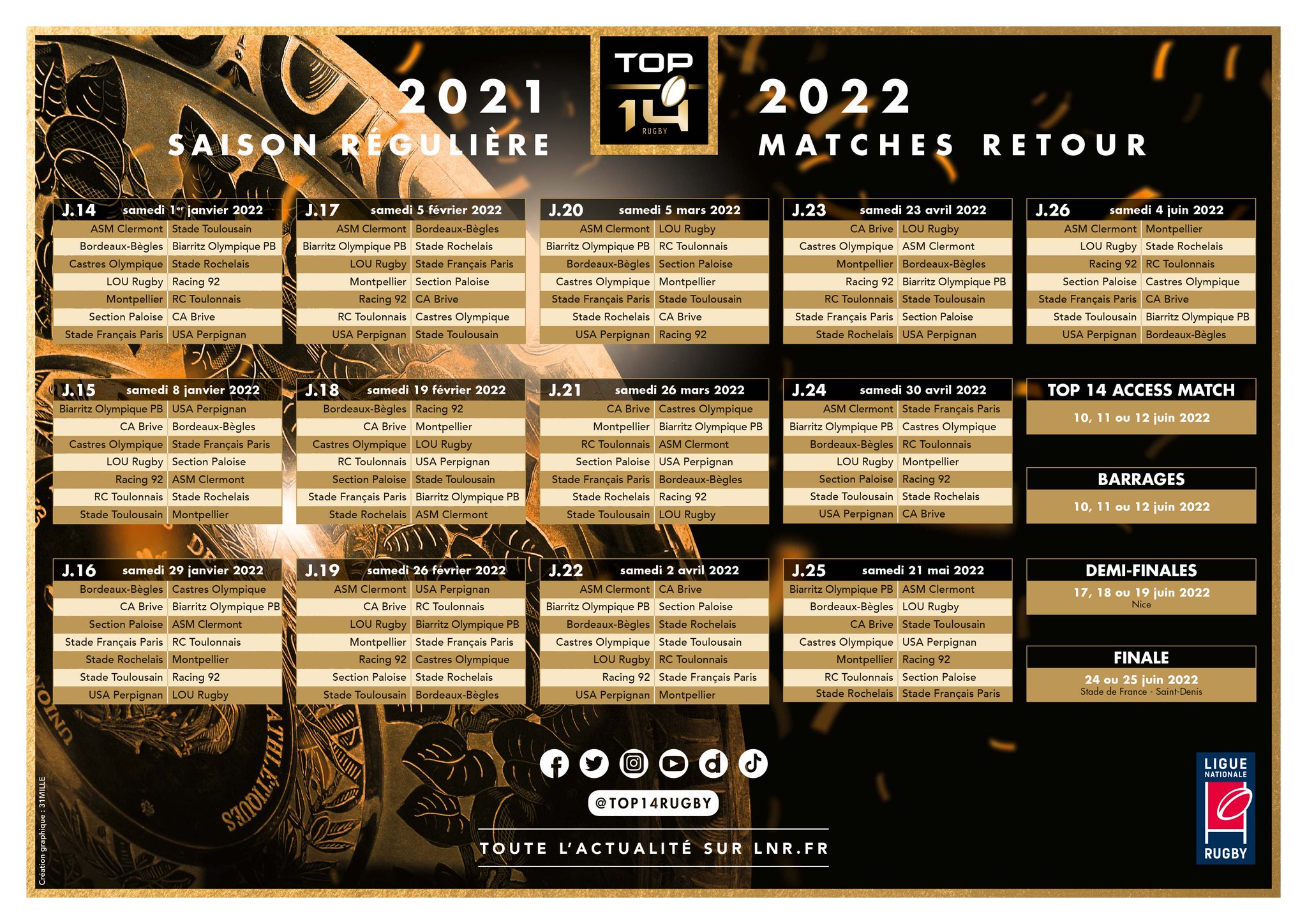 Match top 14 2022 calendrier. Le Top 14 reprendra ses droits le premier week-end de septembre samedi 4 septembre. Match between Lyon and Castres will be played at as of round 10 of Top 14. Canal partenaire et diffuseur officiel diffusera ces.