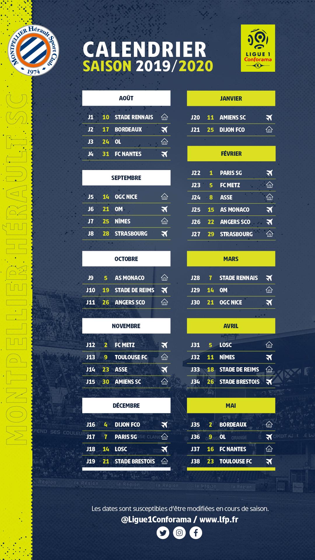 L1 2019 2020 Le Calendrier Complet Du Mhsc